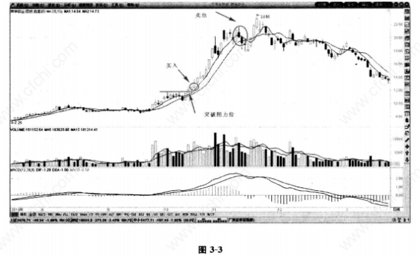 三、买点:投资者可于股价突破次日股价并回踩5日均线的附近买入。