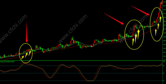 一旦均线系统产生上涨趋势后,就会在投资者中间产生一种“惯性”的指示作用。股价将因更多投资者的追随而不断加强已经形成的向上涨升趋势。