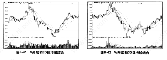 股价下跌到了低点,形成V形底以后,表明一轮连续上涨的行情即将出现。但是,如果仅通过K线形态决策买点,需要投资者具有较高的K线分析能力,此时结合移动均线进行同步分析,买点的位置就非常容易确定了。