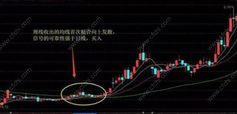 其一是聚拢,是指多个时间周期的均线在某一价位附近汇聚,之后重新选择方向。