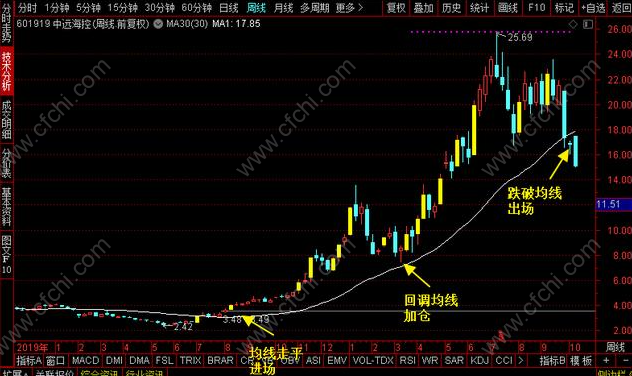当一直在均线上方运行的价格,开始跌破均线,就是我们出场的时候了。