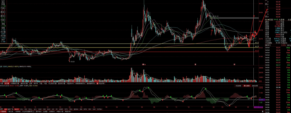 60日均线:是三个月的市场平均交易价格,也被称为季度线。这是一条比较常用、标准的中期均线,对于判断股价的中期走势有着重要的作用。
