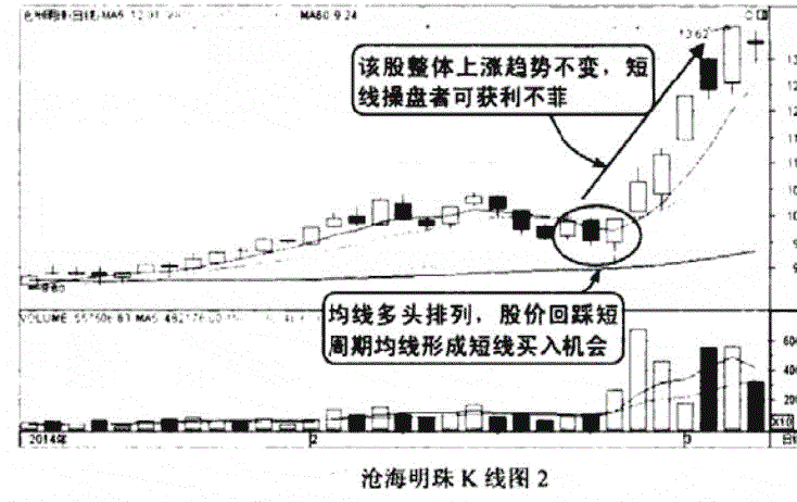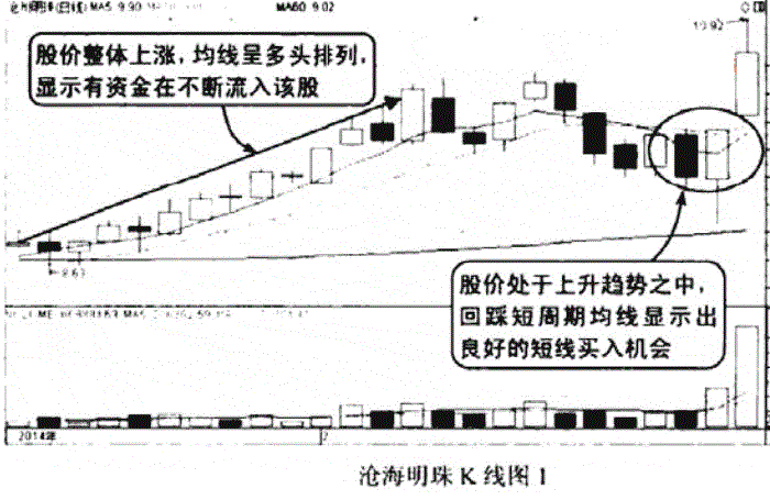 均线多头排列.但股价没有出现爆发性上涨时很可能出现短暂的回踩调整,投资者可在均线回踩位置进行短线操作。