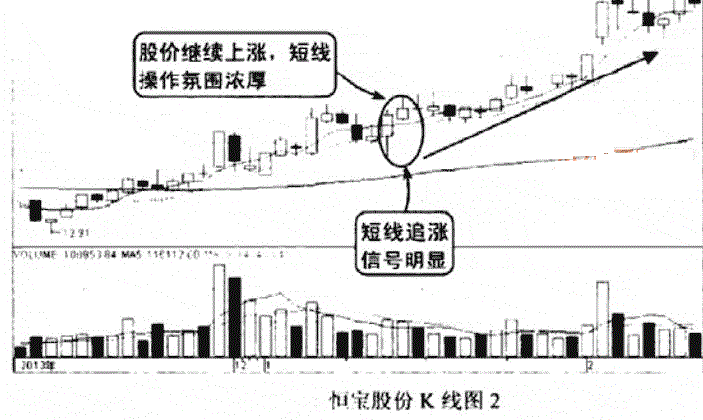 伴随着股价的拉升,均线逐步向上,呈现出多头排列并连续收出阳线,由此告诉投资者短线上涨还有空间,应该枳极追涨买入。