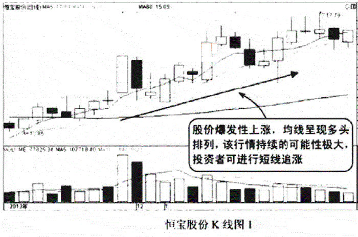 1、股价强势拉升,均线多头排列,投资者可以积极追涨,并由此获得短线操作的收益