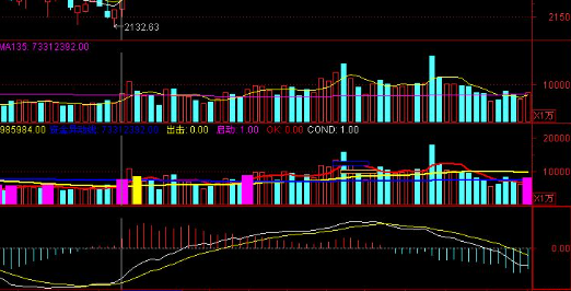 2、在经过一段时间的放量涨升后,上行能量开始减退不足,显示上攻开始乏力或者准备进入较长时间的调整,在60分钟上表现为短期均量线下破长期均量线,显示短期量能释放的平均程度开始萎缩。此两种情况出现任何一种甚至两种同时出现,必须临阵准备卖出状态,密切跟踪,随时准备根据后面的演化而短线出局。