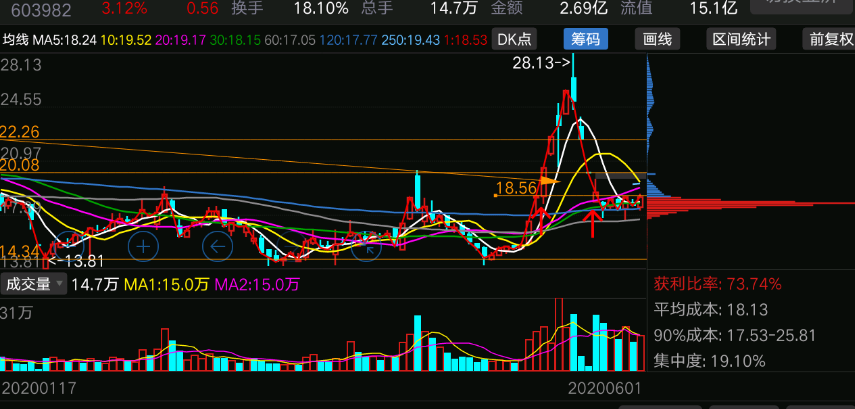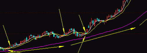2、当10日均线在中期的时候,市场已经有一段时间的涨幅,这时候市场会选择滚动的方式在震荡洗盘,以此来获取更多的筹码。市场和个股都会围绕10日均线震荡整理,又不跌破10日均线,或者跌破后第二天又收回来,这是市场洗盘的动作,当10日均线再次拐头向上的时候,投资者可以买入。等待主升浪的开始。