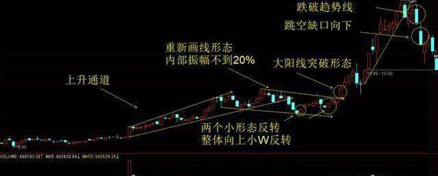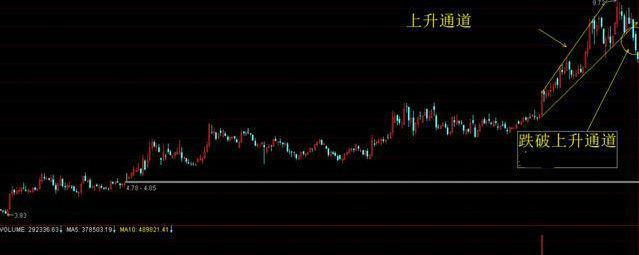 如图 跌破上升通道时应该抛出规避风险,然后耐心等待观察后面的走势。(谁也不知道后面的走势如何,所以出现高点时一定要先抛出。)