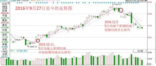 例如5日均线在10均线的上方这就叫做短期多头排列。