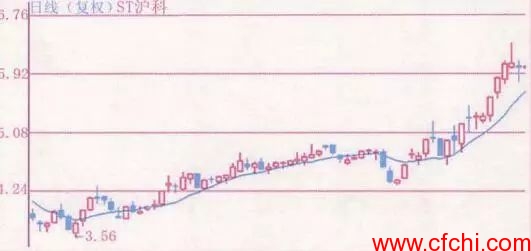 如图所示,该股的走势。图中股价上扬过程中显然屡屡受到10日均线的支撑,且当股价跌破10日均线后又能很快站上10日均线之上,再次获得支撑。我们常说均线是移动的趋势线就是这个道理。