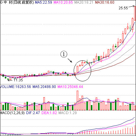 “均线多头排列”选牛股(例:G中黄金、G中材)