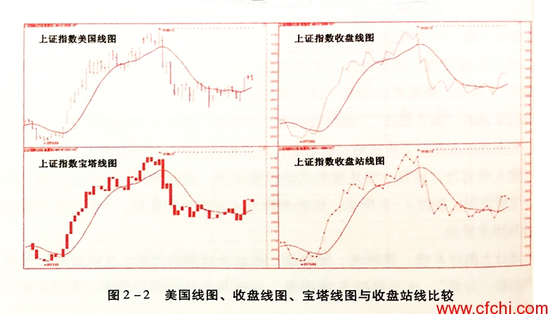 通过上图对K线、美国线、收盘线、收盘站线图的比较,可以看出K线看起来比较“好看”,这不是指K线漂亮,是指其包含的信息较多,而且更易于对于看盘功力深厚的投资者来说,根本不需要什么指标,只看K线就可以操