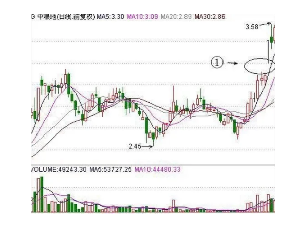 1、要有宽阔的底部,30日及其增加线回归粘合,股价站稳于线上,并于这一阶段中,股价经历漫长的下跌后最好经一次放量反弹后再次缩量二次探底创新低后止跌,其后不断有温和的成交量放大现象,并于几次主动放量上攻触及120日均线,主动修复乖离过大的均线系统,使30、60、120日线走平粘合后即可考虑进入。