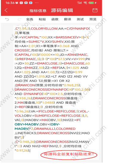 手机版指标安装目前只有复制粘贴源代码这一种方式。