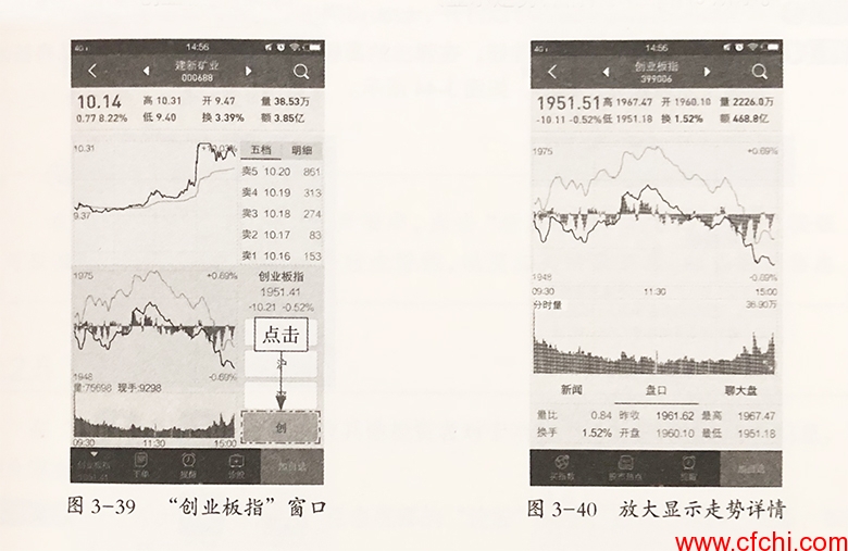 步骤2:点击创业板指的走势图,可以放大显示走势详情,如图3-40所示。