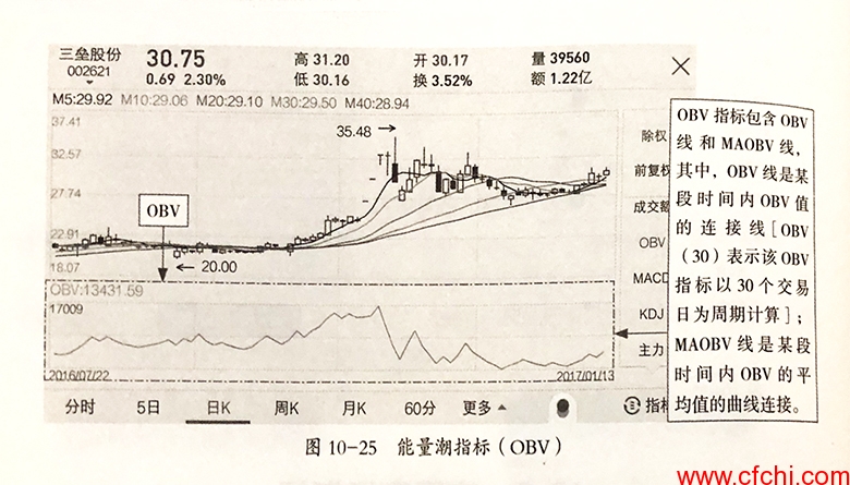能量潮指标(OBV)也叫成交量净额指标、累积能量线,它是通过统计成交量变动的趋势来推测股价趋势的一种技术指标,如图10-25所示。