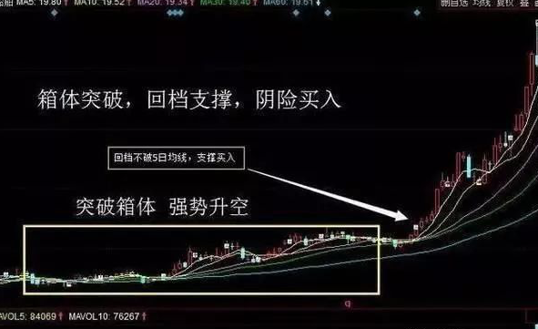 3、箱体突破,阴线买入法股市的价格在单个箱体内进行调整运行,在某天突破顶端,进而伴随着成交量的放量,散户切记不要追高,等待后期股价回调顶端时阴线买入,回调必是缩小成交量的 。