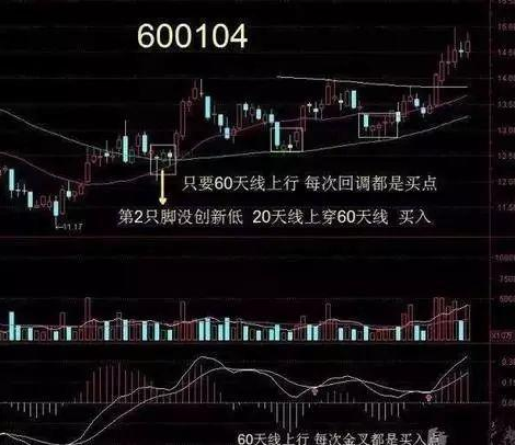 红箭头的地方是涨停。绿箭头的地方是形态形成之后的阴线,之后的第二天形成了一个买点。下面的成交量不断变大又不断缩小,但同时黄色区域中的股价却在一路上升。