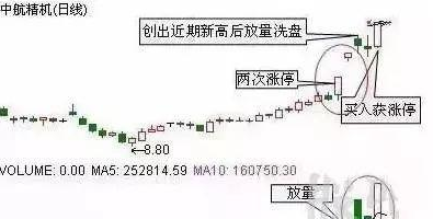 2、在拉升建仓过程中出现一到三个涨停板,同时具备这两个条件的个股应该密切关注了。成交量不断变大,再不断缩小的股票,拉升高度至少是成交量最大的那天对应的股价的两倍。先放出天量再不断缩小的股票的拉升高度至少是成交量最大那一天对应股价的三倍。买点应该是出现这种形态之后,出现调整大阴线,跌幅在超过4%左右的第二天介入。