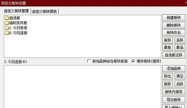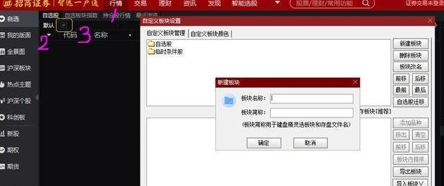 2.设置板块名称如 1.今日涨停 和 2.今日连板 点击确定后,创建了对应板块,
