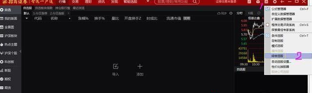 1.选择行情-点击自选-点击加号,弹出自定义板块设置对话框,如图。