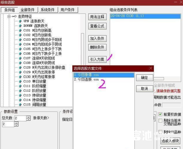 7.点击,引入方案,就可以看到刚才保存的选股方案文件。