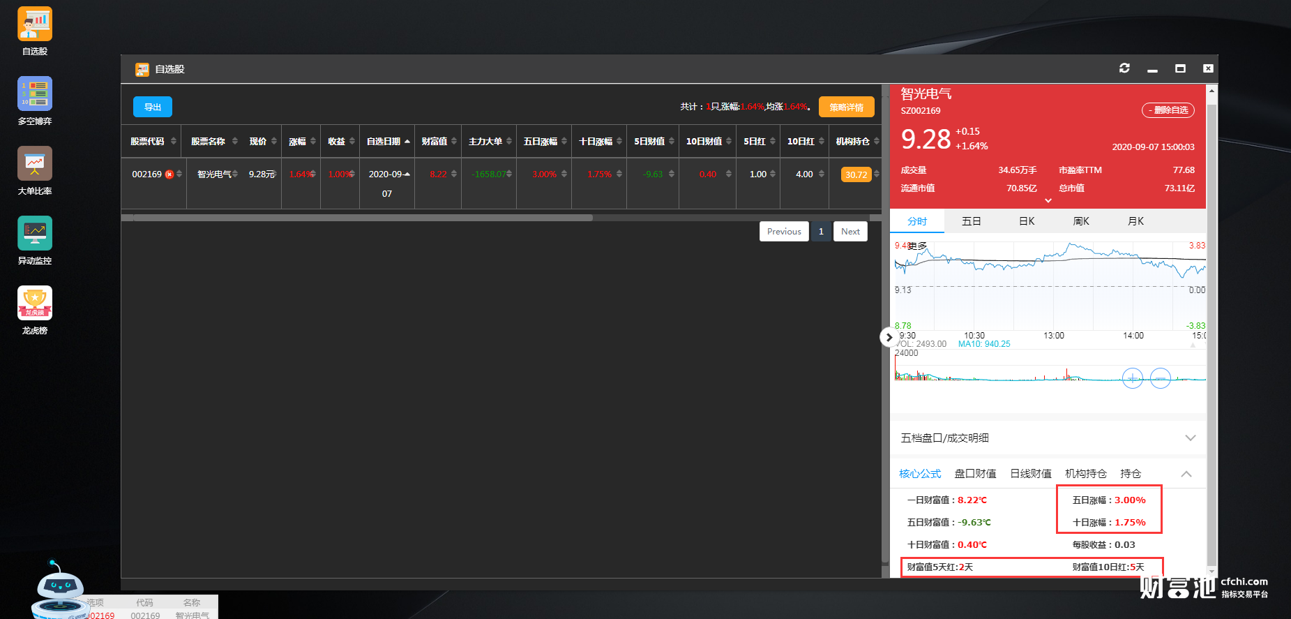 打开PC端的操作系统,然后调出所选的“智光电气”的股票数据: