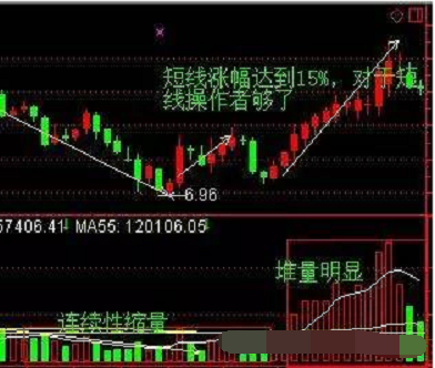 那么期间放量多久才算是开始走出堆量形态,一般时间3-5天为准,这是根据斐波那契数列和短线主力堆量起爆拉升需求所致。前期连续性缩量后突然连续3天以上出现量能持续相对于前期缩量居高不下的量能可称之为堆量形态,这样的个股高度关注!