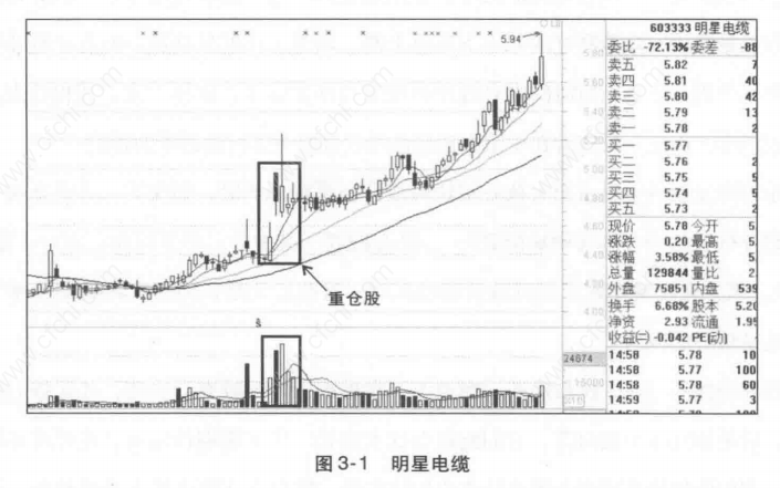 主力资金多半研究实力雄厚,敢于重仓介入的股票,前景看好(图3-1)。主力实力非凡、大举入驻的,才是我们重仓参与的对象。