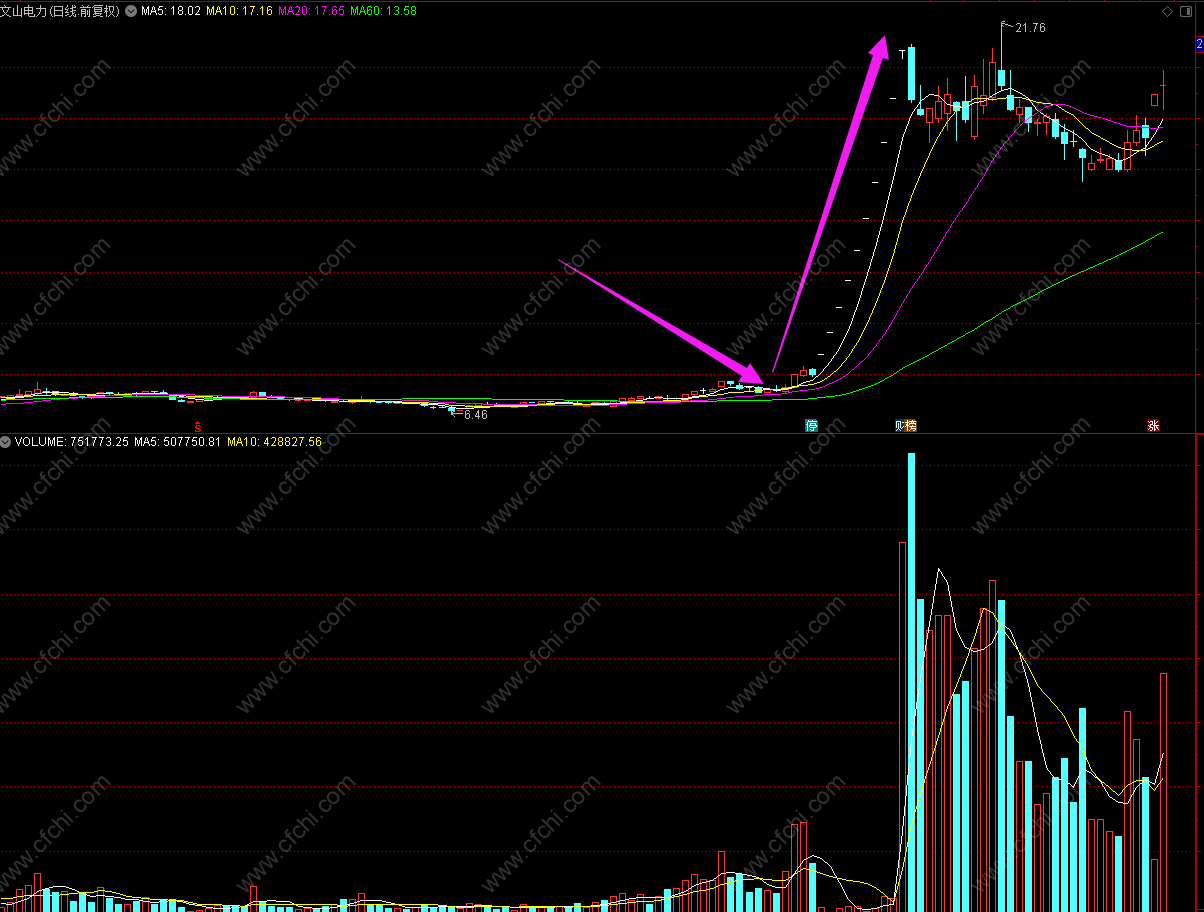 (1)可将三条月K线参数设定为6、12、18, 当上述三条均线呈多头发散粘合向上时可重点关注。