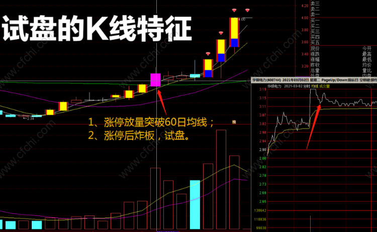庄家经过长期的历史低位横盘吸筹后,筹码达到庄家预先部署的计划时,庄家便开始了试盘的动作。用小部分资金向上买进股票。但由于股价长期处于历史低位,散户投资者对此已形成了习惯性的思维定势。股价稍一上涨,浮码立即涌动。由于庄家还没有培养出跟风盘,所以在日K线上便落下长长的上影线。