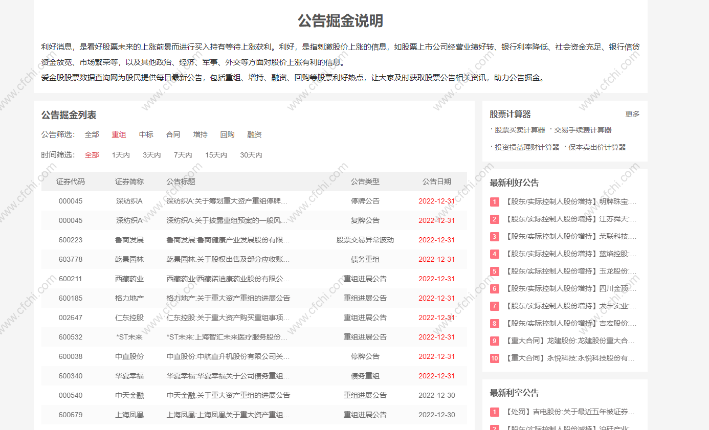 第一步,我们可以通过公告类型,找到各种公告的利好消息类型,重组,或者回购等等