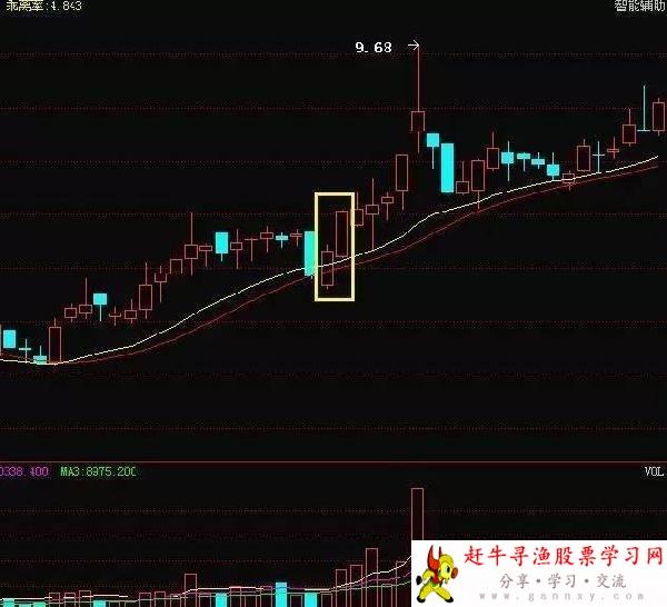 3、出现信号后的介入点应在第三根阴线的收盘价附近