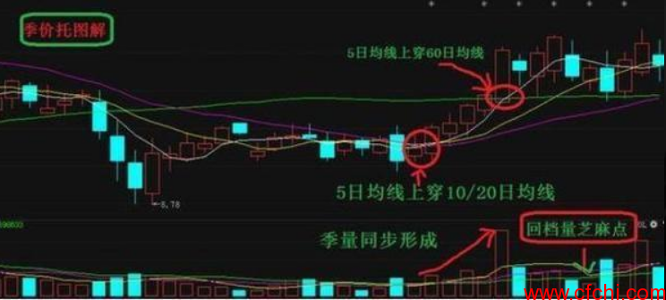 操作要点:MA5上穿MA40的 结点,MA20上穿MA60的结点,MA40上穿MA60的结点组成一个封闭的三角形,该三角形将至少托起一个季度的行情。