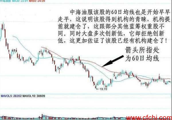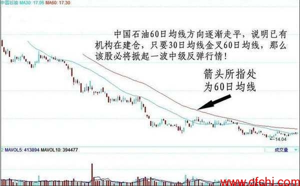 1、在典型的下跌趋势末期,如果出现了60日均线方向开始由向下逐渐转为走平,那么必定可以判断该股有主力在建仓;如果60日均线方向向上则代表主力建仓完毕,开始拉升;如果60日均线朝下,则代表主力出货基本完毕,开始下跌。