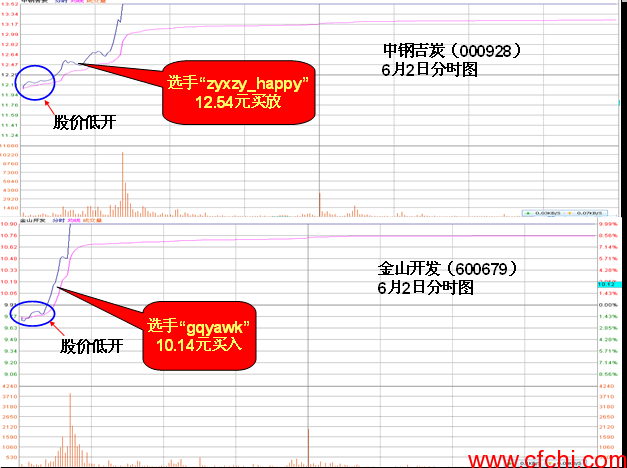 从上面的两个股票看出,股价当天都是由绿盘开出,盘中冲击涨停。低开预示着主力想隐藏一些意图,从另一方面讲主力实力并不太强,所以对于股价后期的表现有一定的制约。两位选手的买点都选在放量拉升的过程中,所以从之方面来讲,短线的爆发力多数是靠追涨来实现的。