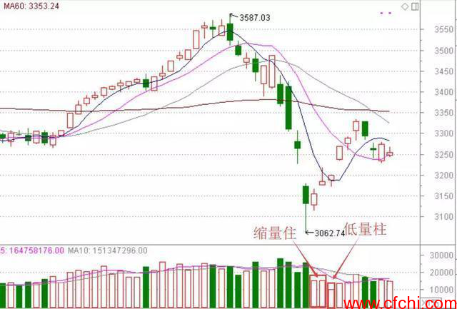 3< 缩倍的低量柱,这是夯底与拉升相呼应的标志。