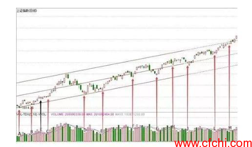 上图中仅仅用黑色箭头标注的K点出现低量柱之后,股价并未出现明显回升,整个阶段一个出现13个低量柱,按照13比1的比例计算,低量柱预测底部的准确率可以说是惊人的。
