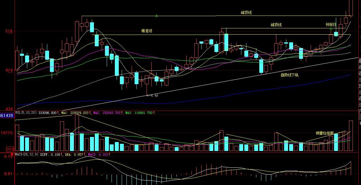 2.在精准线的支撑下,股价最高价连克0303峰顶线和0115峰顶线。