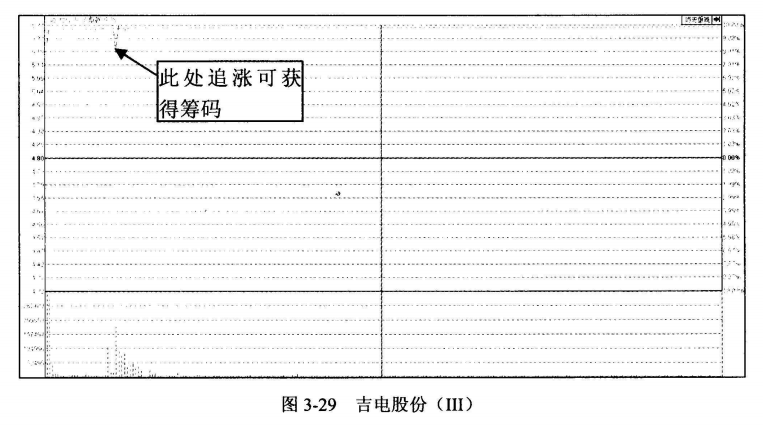 (3)买入时点分析。如图3-29所示,出现此种形态后,若投资者想要获得筹码,必须在集合竞价阶段就开始操作。