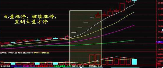 无量涨停,继续上涨的能量大。庄家控盘极强的个股,在主升浪阶段,适逢大盘处于上涨行情,由于筹码锁定也会造成无量涨停现象,说明庄家做多决心大,根本不给散户买入的机会。