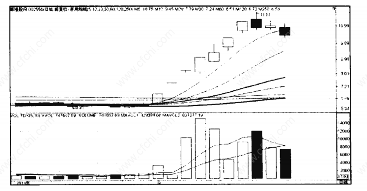 从该股的走势特点来看,说明炒作该股的主力炒作手法极为激进,而且具有相当的实力,似乎有意做一波大行情,迫不及待的做多意愿表露无遗。在这种情况下,投资者就应该预见到该股次日很可能会大幅高开,甚至直接以涨停开盘了。