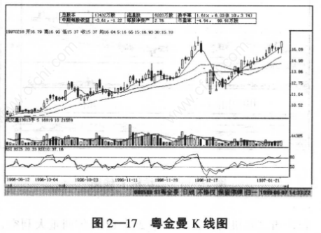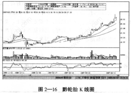 1996年12月中旬受大利空打击,大多数股票连续两天一开盘即告跌停,并维持到收盘,但还是有少数股票曾经多次打开跌停板,走势明显强于大盘,在随后1997 年1月份走势中,这些股明显强于其他股,升幅较可观。如黔轮胎和粤金曼,12月7日均曾打开跌停板,18日反弹中又均以涨停告收,走势较强,后来升幅都不错,在大盘继续下行中也未创新低。