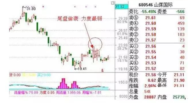 该股在尾盘最后一分钟偷袭涨停,在大多数投资者都快无心看盘时,主力上演了让人目瞪口呆的一幕,但股价明显处于下降趋势中,其实是主力为了出货才拉升的,从上图看第二日股价毫无悬念的低开,当日基本上买了即被套。