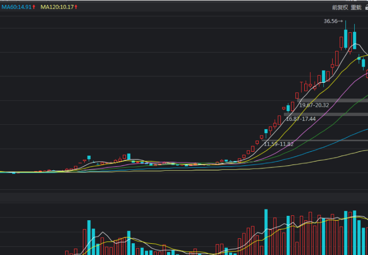 4、量的特征:涨停拉升前有巨量的放出,涨停板反复后继续放量。
