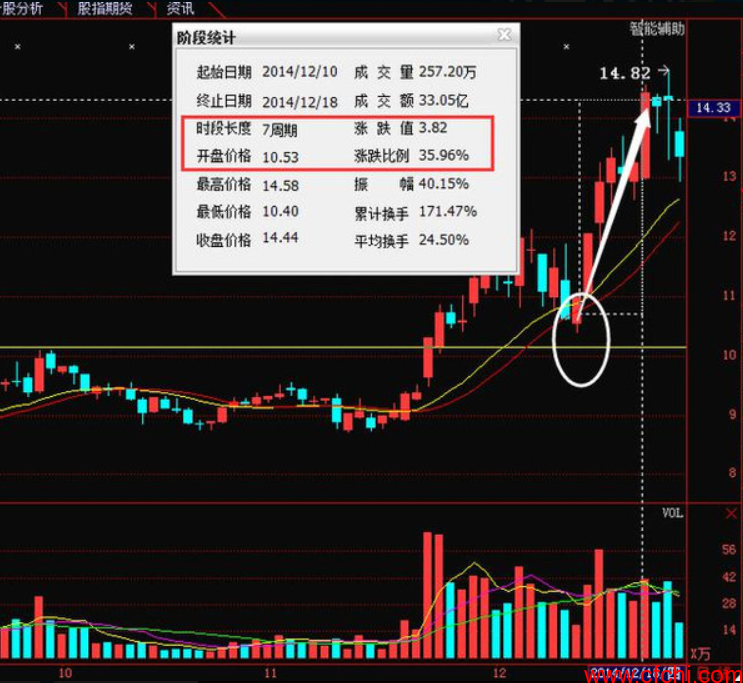 1、周线上出现大的一个盈利波段;(30个点以上并且日线3个涨停板以上);
