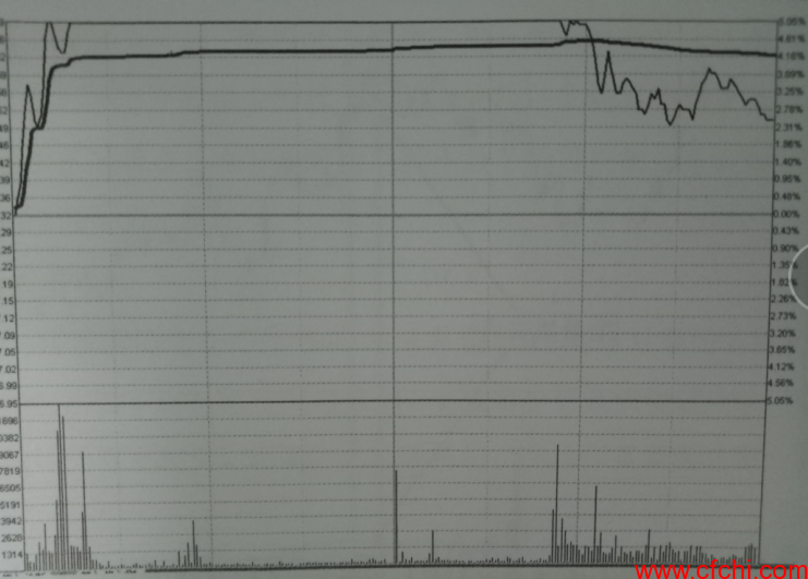如图1所示为ST精伦2011年5月4日分时图,此股在当日出现了中盘开板的形态,从日K线图中可以得知,当日的成交量大幅度放出,这正是中盘开板的放量形态。由于此时的个股正处于盘整区的高点位置,因而, 可以预见随后的下跌走势即将出现,在实盘操作中,股民不可恋战,应及时卖股离场。