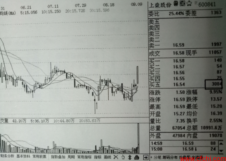 如图2所示是该股价当天收盘时的k线界面,图中显示该股当天几乎以涨停价收盘,可见上述挂单方式的有效性。
