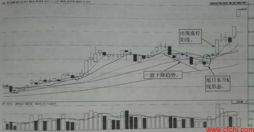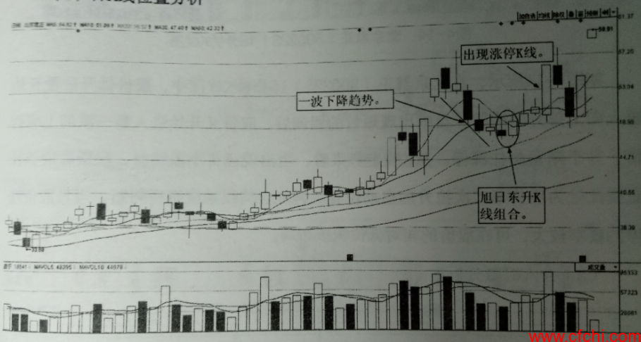 下面,笔者就带领大家详细了解何为K线组合中的“旭日东升”形态。