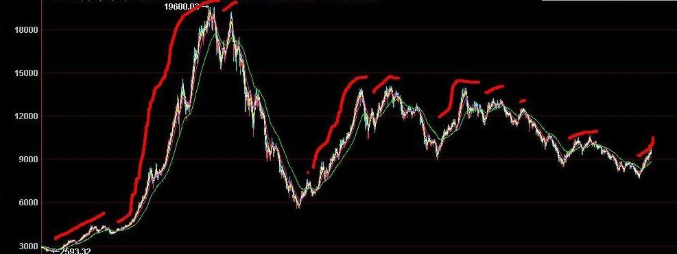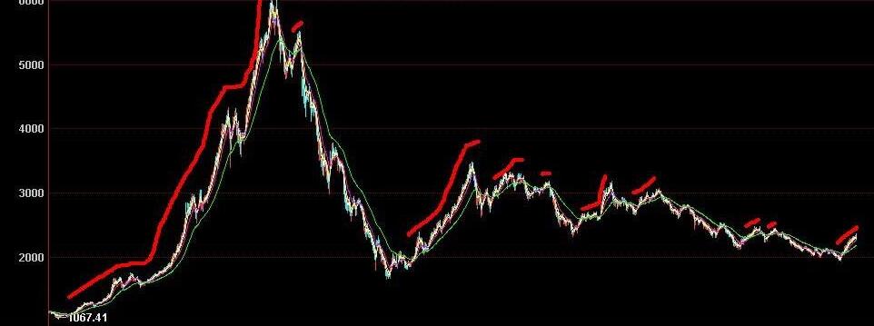 上图为创业板开出来直至到现在的走势图形,清晰可见基本都是下跌形态,操作机会少的可怜。